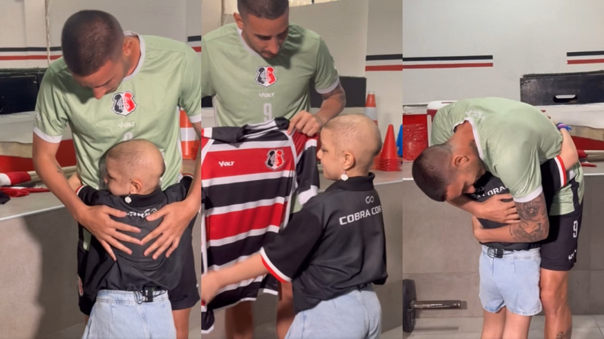 Em luta contra o câncer, torcedora mirim do Santa Cruz conhece ídolo