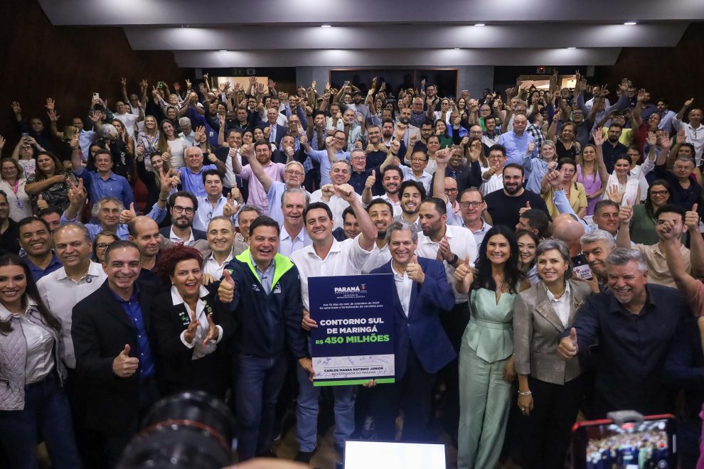 Nesta quarta-feira, 10, Maringá celebrou um passo importante para solucionar a demanda histórica da comunidade por melhorias na Avenida Prefeito Sincler Sambatti (Contorno Sul). O governador Ratinho Junior autorizou a celebração do convênio entre o Governo do Paraná e a Prefeitura de Maringá para a duplicação em concreto da via. A cerimônia ocorreu no Auditório Hélio Moreira e contou com a presença do prefeito Silvio Barros e de diversas outras autoridades. A obra, que será realizada com recursos do governo estadual, está estimada em R$ 450 milhões.