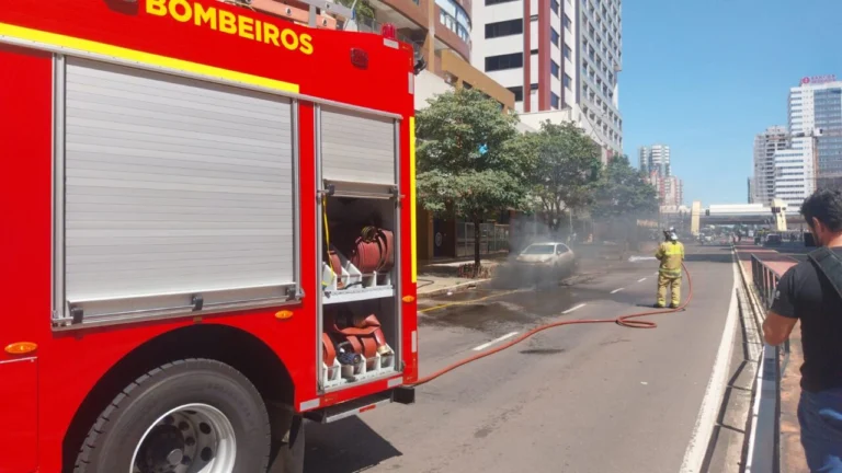 É possível ver uma fumaça preta saindo do local onde passa a rede subterrânea. O Corpo de Bombeiros foi acionado e está no local combatendo as chamas. As equipes trabalham no resfriamento da área com jatos de água para evitar que o fogo se espalhe.